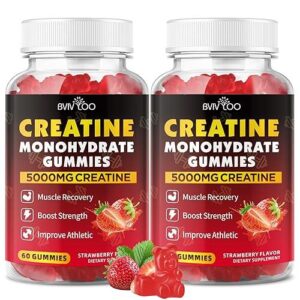 Creatine Gummies 5000mg 120ct Max Strength Muscle Growth Recovery Supplements for Men & Women Creatine Monohydrate, B12 & L-Taurine Chewable Gummies, 1 Month Supply (Blue Raspberry)