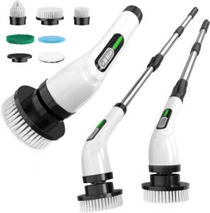 Vikeri Electric Spin Scrubber, Cordless Electric Cleaning Brush with Adjustable Extension Arm, 8 Cleaning Brush Heads, Power Scrubber for Bathroom, Kitchen,Tiles, Floors, and Bathtubs, White