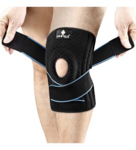 Knee Support Open Patella – 4 Strap Adjustable Knee Brace for Women & Men with Side Stabilizers & Patella Gel Pads, For Knee Pain Arthritis, Joint Pain, Meniscus Tear, Black