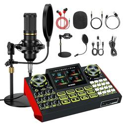 Podcast Equipment Bundle with 3.5mm Condenser Boom Mic for Pc/Phone Live Streaming Singing Gaming Music Recording, Live Sound Card Audio Mixer, Sound Board with Voice Changer, Denoise