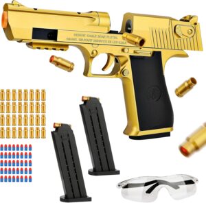 Soft Bullet Toy Gun, Upgrade Fidget Gun Pistol Toys Guns, 12 Shell Ejecting Soft Bullet Blaster with 40 Bullets for Boys (Desert)