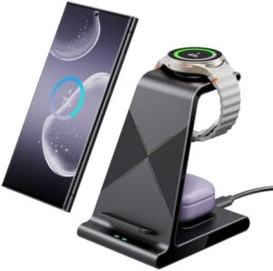 EGV Wireless Charger for Samsung – 3 in 1 Wireless Charging Station for Galaxy S25 Ultra S24 S23, Z Fold Flip 7/6, Detachable Watch Charger for Galaxy Ultra 8/7/6, Foldable, Fast Charging, No Adapter