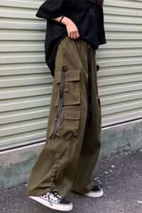 Women Cargo Trousers Wide Leg High Waist Combat Military Pants Casual Multiple Pockets Grunge Punk Boyfriend Style Drawstring Parachute Pants Ladies Y2K Dance Hiphop Bottoms